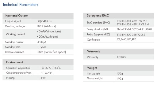 - Panel dotykowy 4-strefowy, RF nadajnik.
