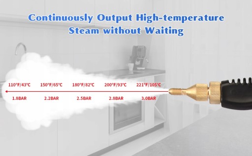 [Wysoka temperatura i ciśnienie pary] 2500W wysoka moc może generować 229°F/105°C wysoka temperatura i 3BAR ciśnienie pary w ciągu 10s, skutecznie usunąć uporczywe tłuste zabrudzenia i plamy.