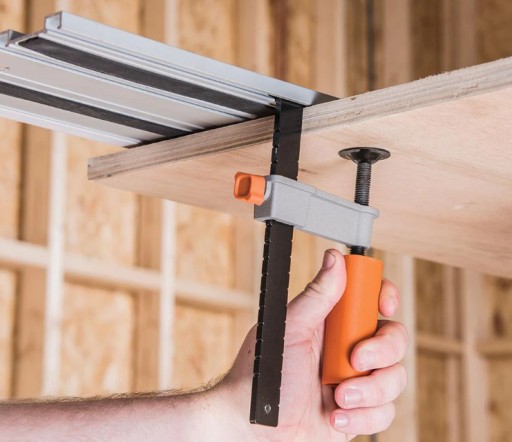 Z łatwością przymocuj prowadnicę do obrabianego przedmiotu za pomocą załączonych, specjalnie zaprojektowanych zacisków.