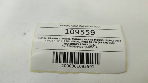 Przedmiot aukcji: WINDA KOŁA ZAPASOWEGO RENAULT MODUS GRAND LIFT
