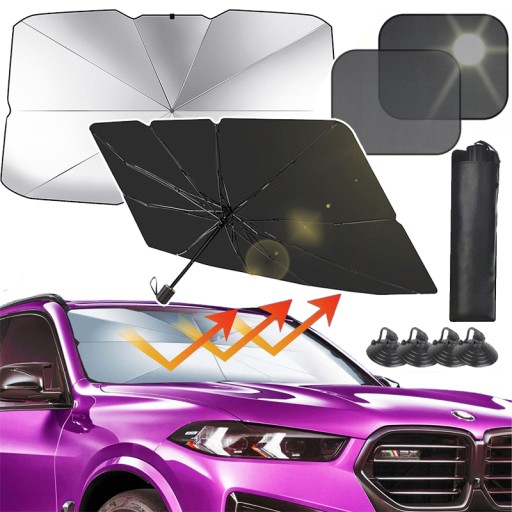 ZESTAW OSŁONA PRZECIWSŁONECZNA PARASOL DO SAMOCHODU AUTA NA SZYBĘ + ZASŁONA - 140 x 80 cm