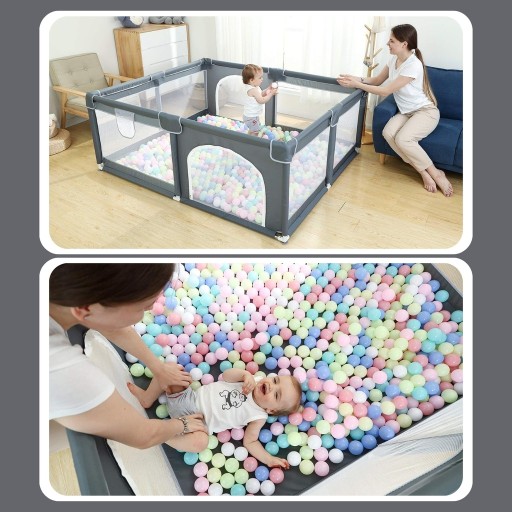 ✅Wygodne Elementy: Kojec posiada wygodny zamek błyskawiczny, który umożliwia łatwe otwieranie i zamykanie drzwi. W zestawie znajduje się także dodatkowy kosz do zabawy piłeczkami, co wzbogaca możliwość zabawy dla dziecka.