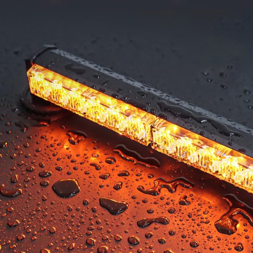 ▶️ POMARAŃCZOWE LAMPY OSTRZEGAWCZE LED - HOALTE⭐ STYL "STROBOSKOP"⭐ 12V / 24V, 4 SZTUKI W ZESTAWIE KONTROLER
