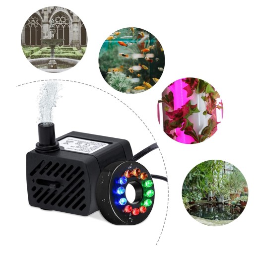 Ta mini pompa wodna z diodą LED dodaje do tradycyjnej diody LED 12 diod LED w czterech kolorach (żółty, zielony, czerwony, niebieski), wnosząc do pomieszczenia wspaniały kolor i atmosferę.