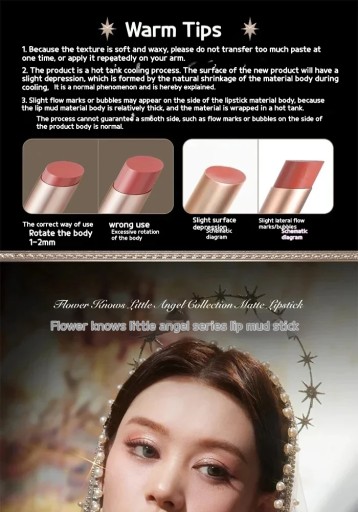 Цветок знает маленького ангела. Грязевая помада для губ. Бархатная матовая помада-туман. Скрытая помада.