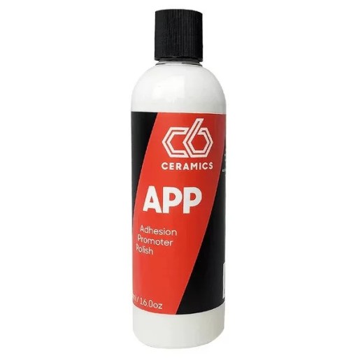 C6 Ceramics Adhesion Promoter Polish (APP) to wodna formuła wykorzystująca ultradrobny tlenek glinu i żywice ceramiczne, która pozwala na mikroskopijne polerowanie i wzmacnianie powierzchni. Solwenty/rozpuszczalniki zawarte w C6 Ceramics APP delikatnie pęcznieją lakier, a żywice ceramiczne blokują go w tym stanie, co czyni powierzchnię bardziej podatną na przyjęcie powłoki ceramicznej.