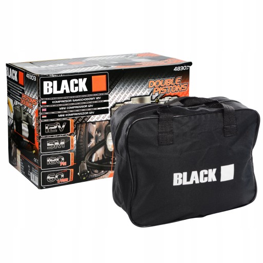 KOMPRESOR POWIETRZNY DWUTŁOKOWY BLACK 12V +LATARKA (48303)