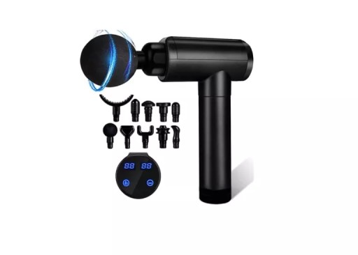 Pistolet do masażu głębokich tkanek, pistolet do masażu mięśni dla sportowców, 30 prędkości, 10 rodzajów głowic masujących, ręczny masażer do