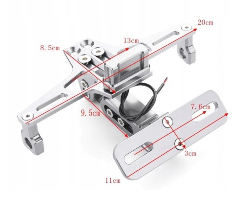 UCHWYT MOCOWANIE DO TABLICY REJESTRACYJNEJ MOTOCYKLA PODŚWIETLENIE