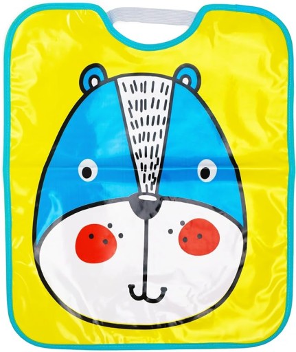 Kolorowe nadruki, zabawne wzory i wodoodporne śliniaki są wyposażone w gumową uszczelkę. jest wykonany w 100% z winylu. Naczynia odporne do 30 stopni, można używać na sucho. Odporne włókna, które zapobiegają przedwczesnemu zużyciu odzieży. Jest idealny dla dzieci powyżej 1 roku życia.