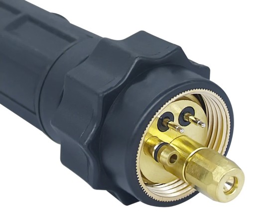 Uchwyt jest chłodzony gazem, co zapewnia efektywne odprowadzanie ciepła i dłuższą żywotność komponentów, minimalizując ryzyko przegrzania i zapewniając stałą wydajność podczas długotrwałych prac spawalniczych.