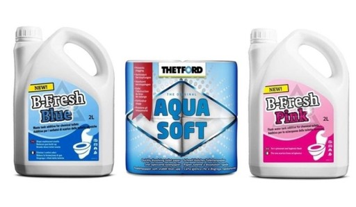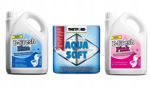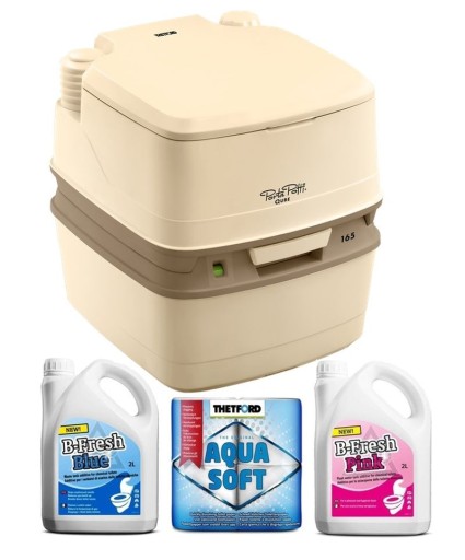 Nazwa produktu: Toaleta turystyczna przenośna ze wskaźnikiem 165 Luxe + Zestaw płynów B-Fresh Blue 2 l + B-Fresh Pink 2 l + Papier toaletowy Aqua Soft - Thetford z firmy GoMarket