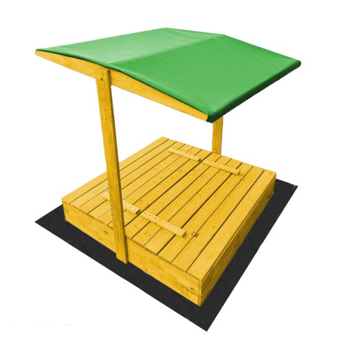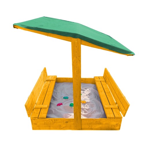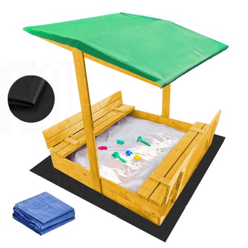 Piaskownica Drewniana Zamykana z Ławkami 120x120 cm + DASZEK W KOLORZE ZIELONYM
