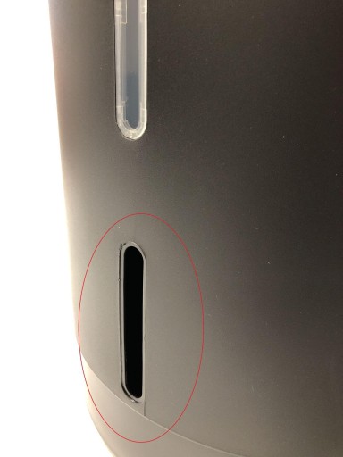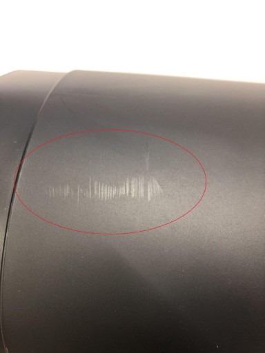 Brak jednego okienka do sprawdzania poziomu pelletu. Delikatne rysy - zaznaczone na zdjęciu rzeczywistym.