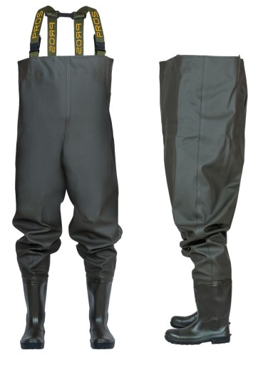 Spodniobuty wodoochronne z wgrzanymi na stałe wysokiej jakości kaloszami. Posiadają regulowane szelki z elastycznej, szerokiej gumy. Model produkowany z wodoochronnej, wytrzymałej tkaniny Plavitex Heavy Duty. Przeznaczony szczególnie dla wędkarzy i rybaków do użytku przy wszelkich pracach rybackich. Zapewniają skuteczną ochronę przed wodą. Technika obustronnego zgrzewania zwiększa wytrzymałość szwów.