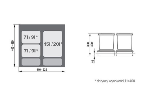 Pojemnik na odpady 60 potrójny 1x20l + 2x9l
