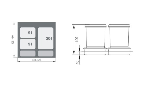 КРУИЗ Контейнер для мусора для ящика PRAKTIKO 60 20+2x9л h- 40см