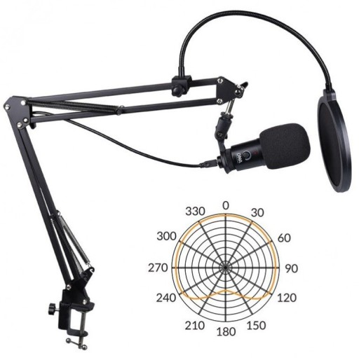 MIKROFON DO KOMPUTERA POJEMNOŚĆIOWY USB + RAMIE BIURKOWE POP FILTR