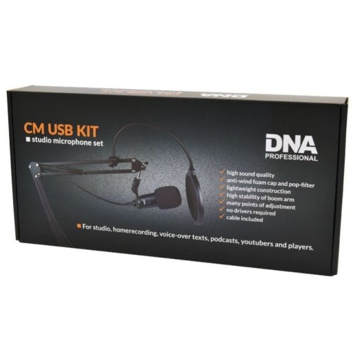 to zestaw mikrofonowy idealny do domowego studia, nagrywania podcastów oraz szerokiego zastosowania w homerecordingu. W jego skład wchodzą mikrofon pojemnościowy USB, mocowany do blatu statyw mikrofonowy w postaci wysięgnikowego ramienia, filtr przeciwwietrzny zakładany na mikrofon, dodatkowy pop-filtr eliminujący powstawanie tzw. głosek wybuchowych, oraz przewód USB o długości 1,5 m.
