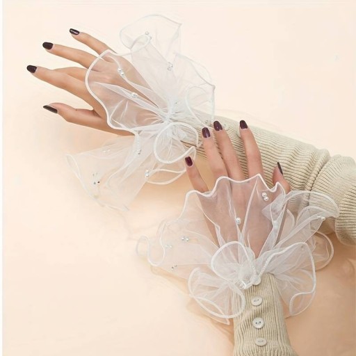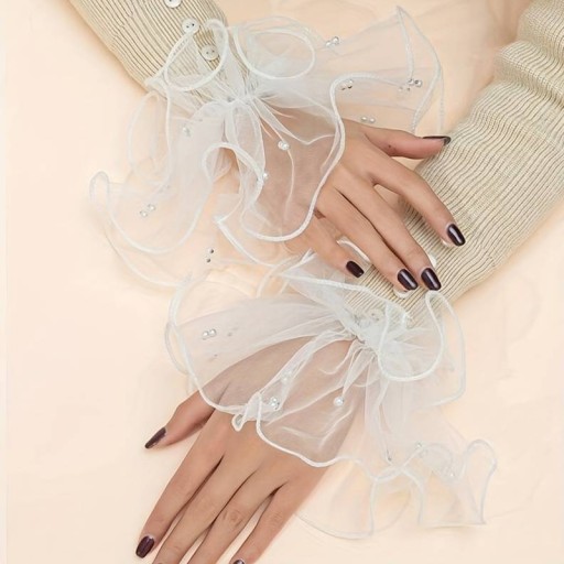 Белые расклешенные тюлевые рукава для фото ногтей