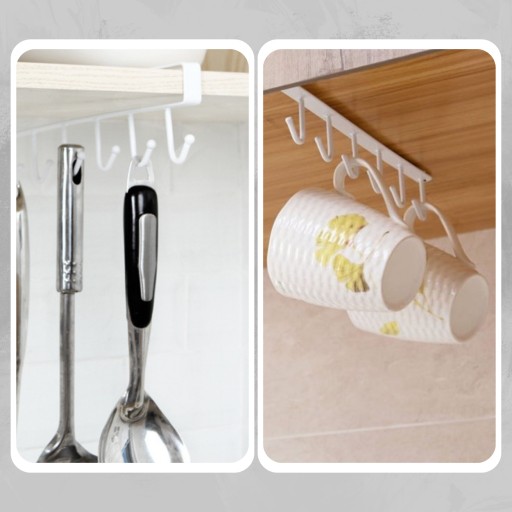 Elegancki wieszak podszafkowy kuchenny na naczynia - 6 haczyków