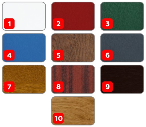- Okucia: 2x Klamki, 2x Uchylacze, 2x Zawiasy