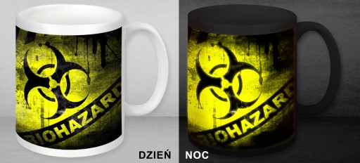 Kubek posiada specjalną fosforyzującą powłokę, dzięki czemu w miejscach gdzie są jasne elementy zostanie naświetlony i w ciemności te elementy będą świeciły.
