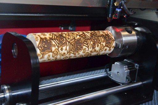 W sprzedaży: nowa przystawka rotacyjna do grawerowania na elementach okrągłych w ploterach laserowych Co2