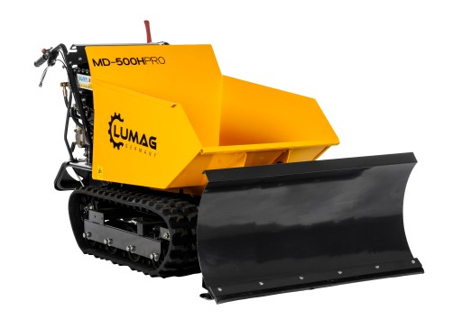 Miniwywrotki marki Lumag Germany sprawdzają się w najtrudniejszych warunkach dzięki wytrzymałej konstrukcji i wysokiej jakości materiałów. Budowa wywrotek pozwala na osiągnięcie dużej wydajności oraz sprawności. Gąsienicowa miniwywrotka MD500H-PRO z hydrauliczną wywrotką dzięki swym wymiarom może być swobodnie używana w budynkach i w wąskich przejściach, przejazdach. Ładowność wynosi 500 kg .