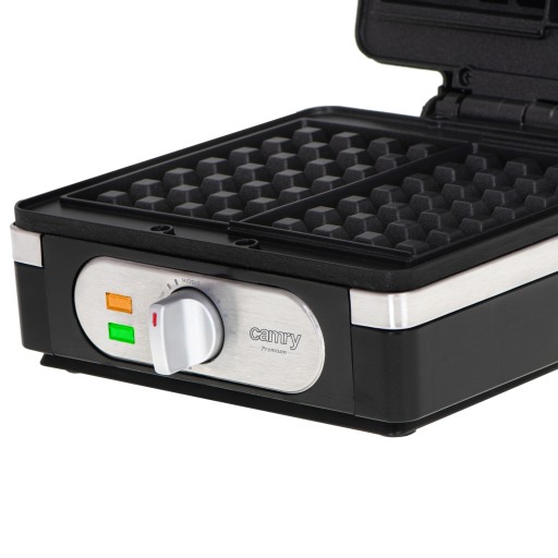 - Płynna regulacja temperatury chroni przed zbytnim spieczeniem gofrów, co związane może być z wydłużającym się czasem pieczenia ciasta.
