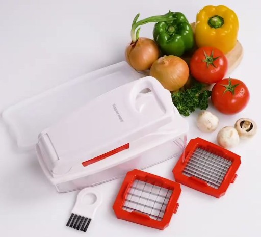 Tupperware Super Samuraj może znacznie SKRÓCIĆ CZAS od przygotowania do talerza. Jest to poręczny gadżet kuchenny, który ma 3 wymienne, super ostre ostrza, które siekają, kroją w kostkę i plasterki w ciągu sekundy. Ponadto, koniec z uciążliwymi oparami cebuli i łzami.