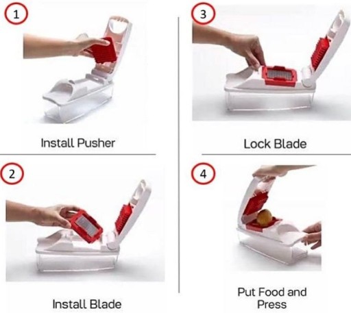 Kompaktowa konstrukcja zajmuje minimalną ilość miejsca na blacie podczas przygotowywania potraw i w szafce, gdy nie jest używana, a wszystkie ostrza mieszczą się w pojemniku. Antypoślizgowy pojemnik utrzyma pokrojone w kostkę składniki do czasu, aż będą gotowe do gotowania. Ultra-przezroczysty pojemnik pozwala również zobaczyć, ile do tej pory pokrojono w kostkę.