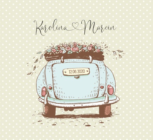 - Na górze grafika samochodu (imiona młodych i data ślubu)