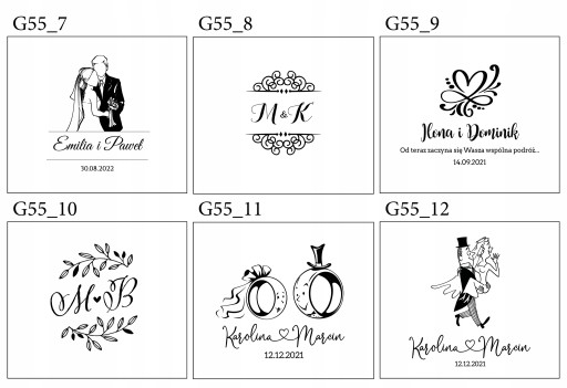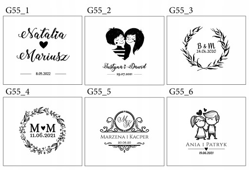 - Imiona Państwa Młodych i datę ślubu: np. Kasia i Marcin, 20.10.2020