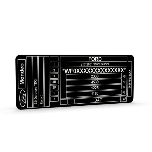 Grawerowana naklejka znamionowa VIN.