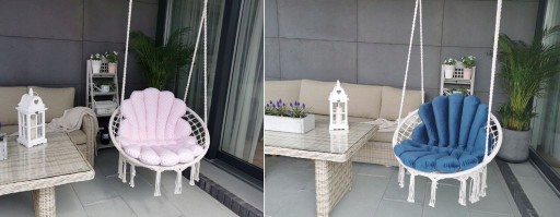 - Poduszka Muszla idealnie pasuje do huśtawek typu Bocianie gniazdo, Hamak Brazylijski , do mebli ogrodowych , oraz do wystroju wnętrza jako poduszka dekoracyjna.