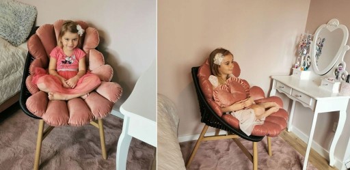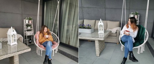 Komplet dwóch sztuk poduch które łączą się w jedna duża poduszke o wymiarze ok. 110 cm średnicy.Wszystkie zdjęcia przedstawiają rzeczywisty wygląd poduszek. Huśtawki oraz meble przedstawione na aukcji są tylko elementem dekoracyjnym- rekwizytami