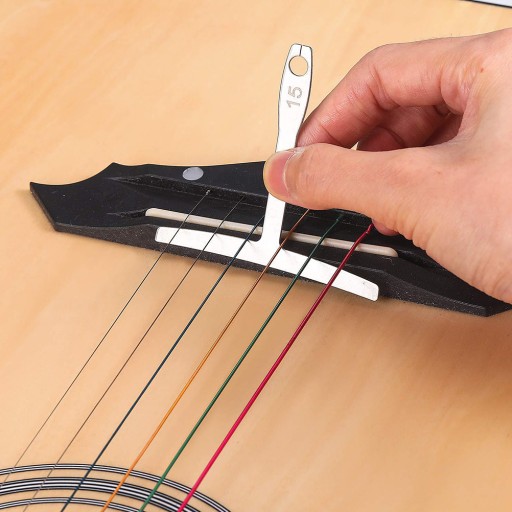 Zestaw linijek gitarowych może mierzyć płaskość szyjki gitary, odległość strun, promień struny itp.