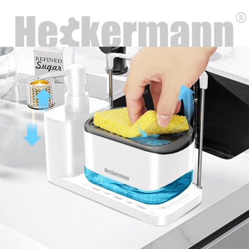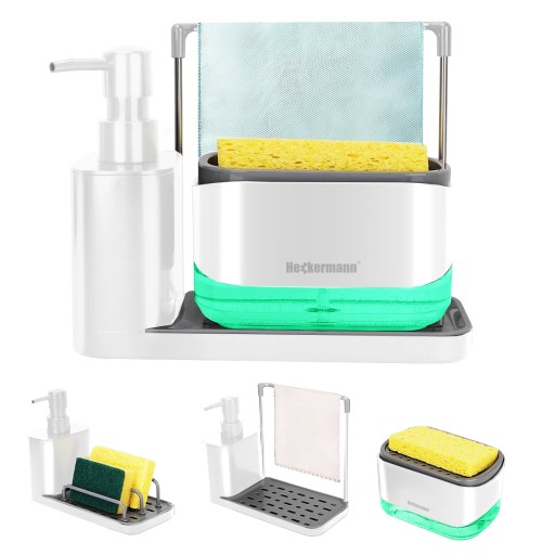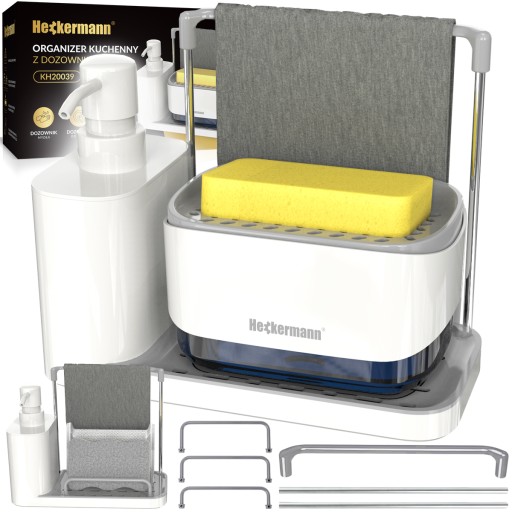 ▶️ Dozownik mydła kuchennego i płynu do mycia naczyń z organizerem kuchennym
