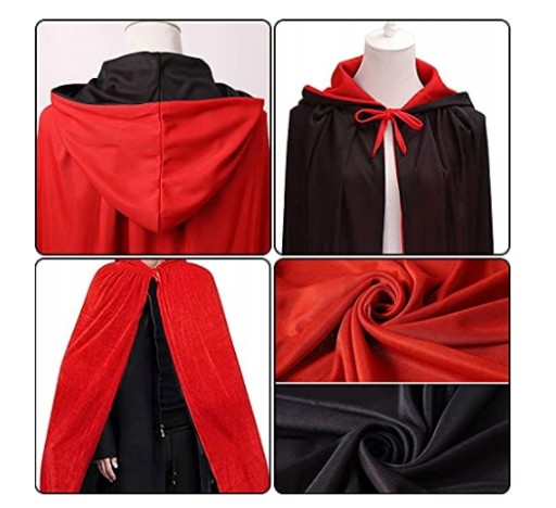 - Dwustronny płaszcz: jedna strona jest czarna, a druga czerwona. Można go odwrócić (czerwony lub czarny na zewnątrz), jeśli wolisz.