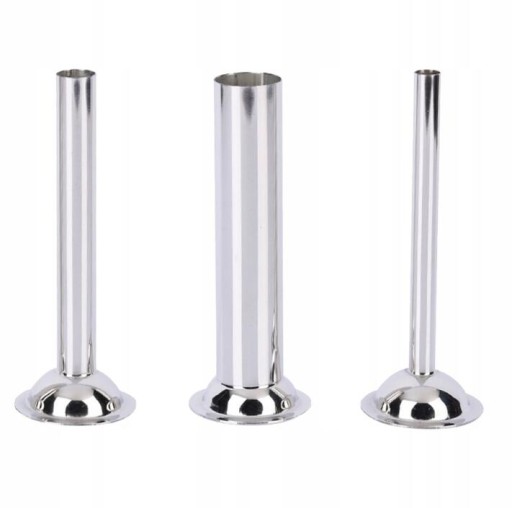 Funkcje Kolor: srebrny. Materiał: stal nierdzewna. Rozmiar: 5,8 x 15,5 x 3,2 cm (duży), 5,8 x 15,5 x 1,9 cm (średni), 5,8 x 15,5 x 1,2 cm (mały). Wypełniacz do kiełbasy ze stali nierdzewnej, bardziej wytrzymały. Pożegnaj się z łatwo pękającą i żółknącą plastikową tubą farszową. Trwały i bezpieczny w użyciu, nie pęka ani nie odkształca się łatwo. Ciesz się pyszną kiełbasą, nie martwiąc się czyszczenie. Nadaje się do każdej kuchni, miły pomocnik dla osób, które uwielbiają robić kiełbaski. Można go również zastosować do wypełnienia worków mięsnych mieloną wołowiną, dziczyzną, wieprzowiną, indykiem itp.