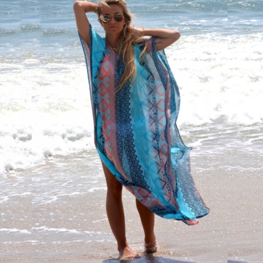 DŁUGA PLAŻOWA NARZUTKA LETNIA SUKIENKA PAREO TUNIKA