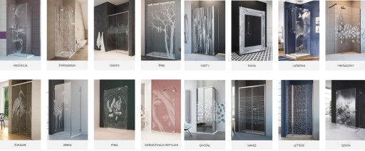- Różne warianty szkła, w których parawan może zostać wykonany na wymiar. Wzory poniżej.