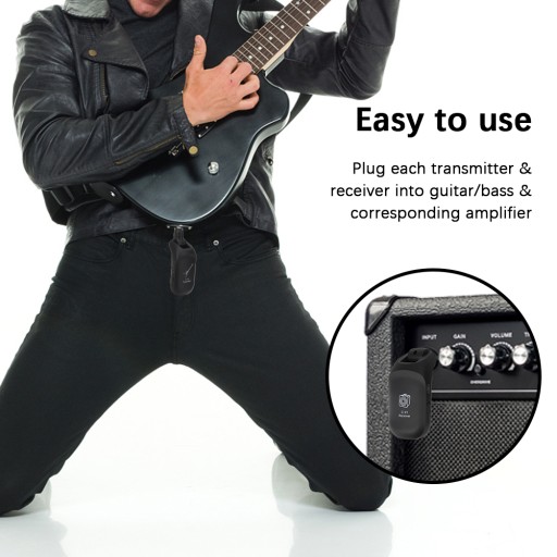 ⏺ Łatwy w użyciu i wystarczy podłączyć każdy nadajnik i odbiornik do gitary/basu i odpowiedniego wzmacniacza.
