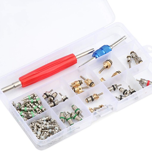 102 SZTUK Rdzeń zaworu klimatyzatora samochodowego R12 R134a Klimatyzacja samochodowa Chłodnictwo Trzpień zaworu opony z podwójną głowicą Podwójny demontaż Narzędzie do usuwania Zestaw asortymentowy (102 SZTUK)
