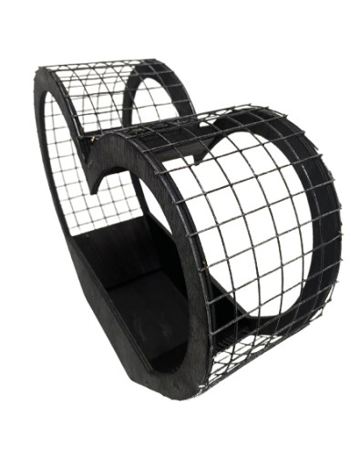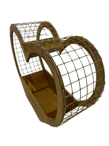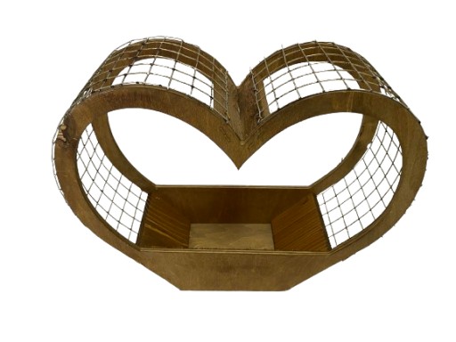 КОРЗИНА-КЛЕТКА ЧЕРНАЯ СЕРДЦЕ, ДЕРЕВЯННАЯ КРЫШКА, ВЫСОТА 28 СМ.