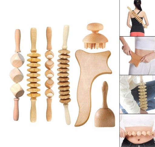 Co dostaniesz: Ten pakiet zawiera 7 szt Narzędzi do masażu Gua Sha, 1 szt drewnianego narzędzia Gua Sha w kształcie kubka, 1 szt drewnianego narzędzia Gua Sha w kształcie siekiery, 1 szt drewnianego 5-rolkowego masażu, 1 szt drewnianego masażu głowy, 1 szt drewnianego 9-rolkowego masażu , 1 szt Drewniany masażer z 3 rolkami, 1 szt Drewniany masażer z 12 rolkami, może zaspokoić różne potrzeby w zakresie rozluźniania mięśni i uwalniania stresu