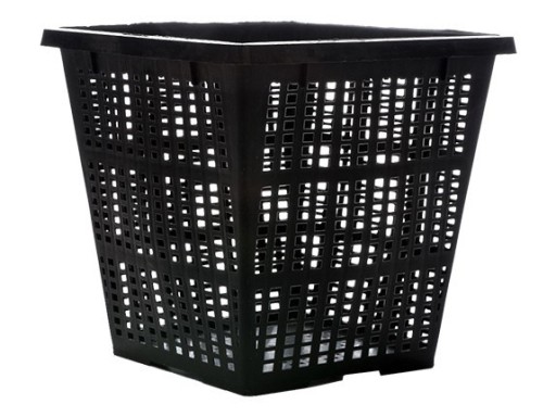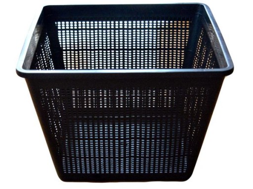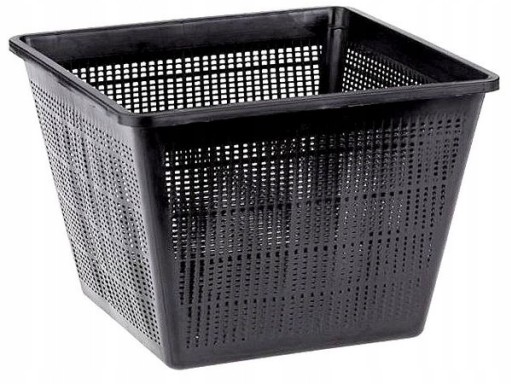 Ażurowy kosz utrzymuje bryłę korzeniową roślin w całości, zapobiega wypłukiwaniu podłoża oraz ułatwia wyjmowanie roślin, np. przy czyszczeniu stawu.