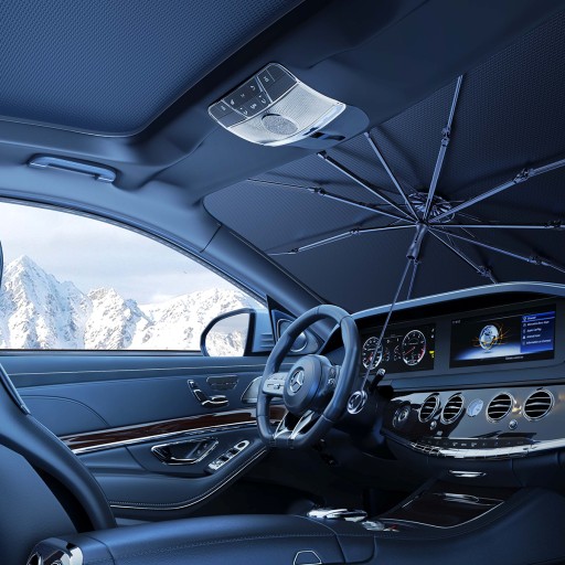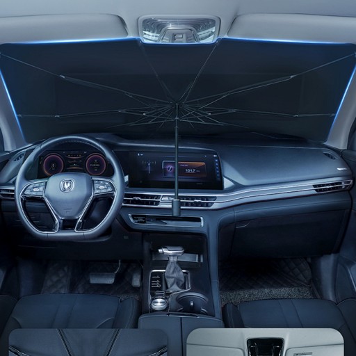 ✅ŁATWY W UŻYCIU - Podobnie jak parasol używany w codziennym życiu, otwórz parasol przeciwsłoneczny, umieść pod przednią szybą samochodu, a następnie pociągnij w dół osłony, aby zabezpieczyć osłonę przeciwsłoneczną. Łatwy i wygodny w przechowywaniu, gdy nie jest używany, można go złożyć do skórzanej torby, którą dostarczyliśmy, nie zajmując dużo miejsca.
