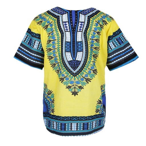Unisex Afrykańskie nadruki Sukienka Bawełniana koszula Dashiki Etniczny kaftan Żółty niebieski